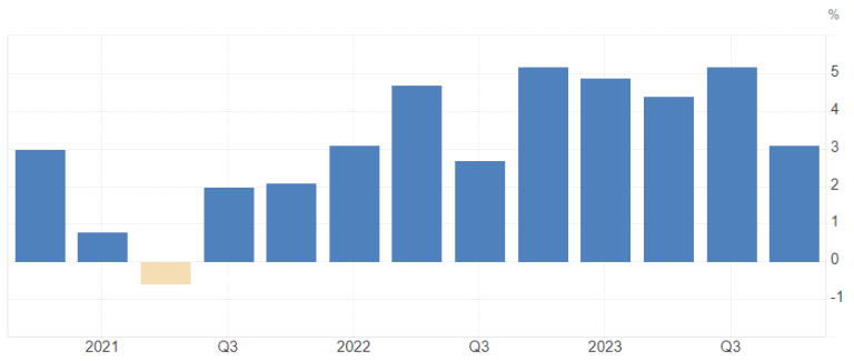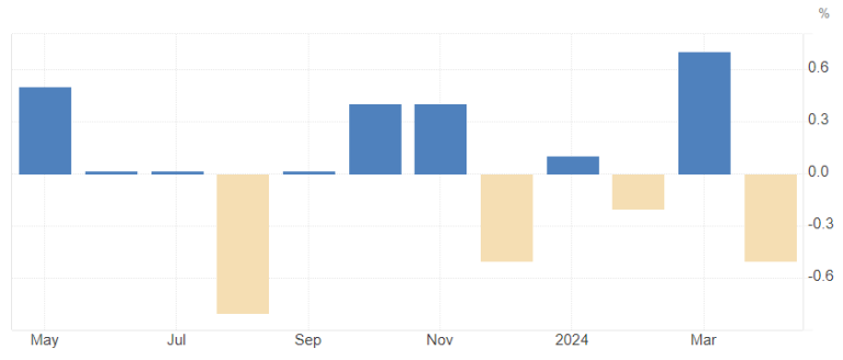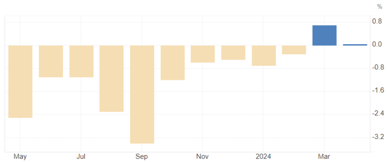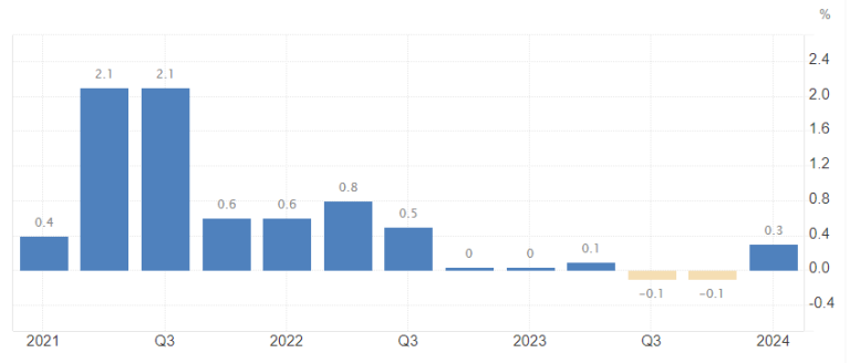 GDP growth is pretty much flat: 0.3% in Q1 2024 after two consecutive quarters of 0.1% contraction.