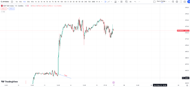 Wednesday 13th Dec, the Federal Reserve held their FOMC meeting where they once again held rates. In previous meetings this cycle, the Fed did well to push back against market expectations of an early rate cut, however for the first time the Fed gave in and capitulated and for the first time was in line with market expectations of more rate cuts being needed in 2024, a very dovish stance, this was felt heavily throughout the FX market as rates were seen as being significantly below expectations for the dot plot metrics, causing the dollar to fall and most risk assets rising quite significantly.