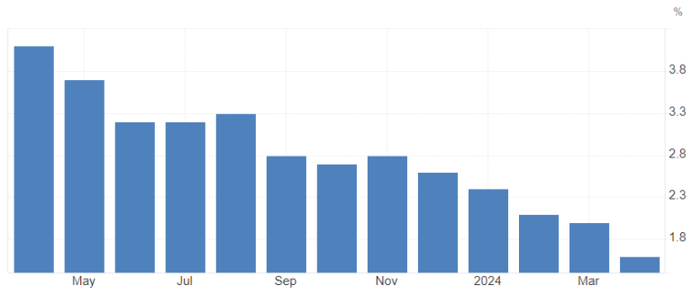 Inflation: Core inflation YoY dropped to 1.6% in April, which is the lowest since March 2021.