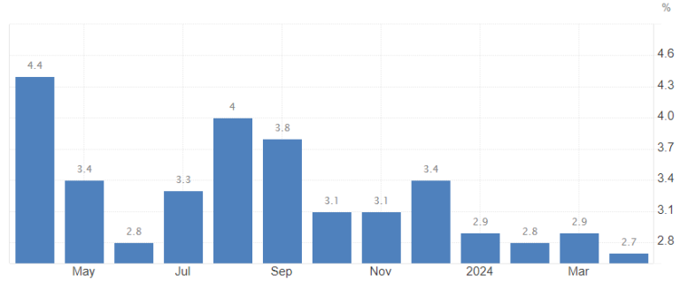 Headline inflation YoY dropped to 2.7% in April, which is also the lowest since March 2021.