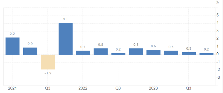 Expected is a 0.2% QoQ reading – flat with the last reading and a decrease from 1.5% to 1.2% on the YoY reading.