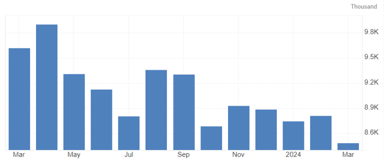 We saw a constant decrease in the numbers, so the forecast is for 8.34m new employees for April (note, this isn’t May yet).