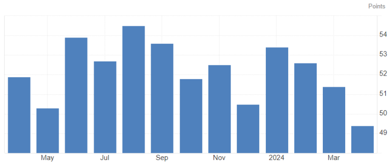 This time around, the consensus is for 49.6, which would mean a slight increase but still in contraction territory.