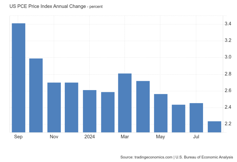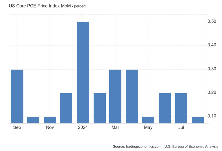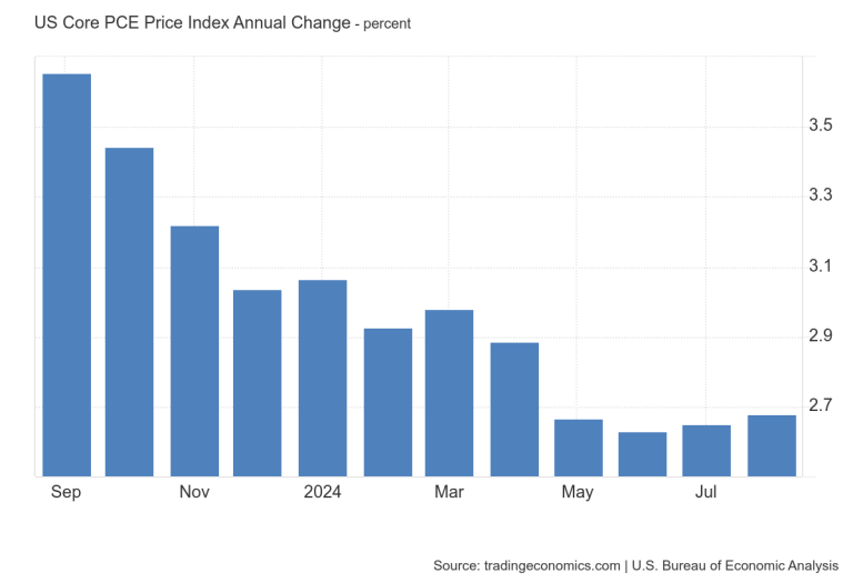 Inflation data released by the U.S. Bureau of Economic Analysis (BEA) on Friday showed that the headline Personal Consumption Expenditures (PCE) Price Index rose by 2.2% year-over-year in August, slightly lower than the market consensus of 2.3%. In terms of monthly changes, the PCE Price Index increased by 0.1%, aligning with analyst projections. The core PCE Price Index, which excludes the more volatile food and energy segments, also rose by 2.7% on a year-over-year basis, matching market expectations. However, the monthly growth for the core PCE was just 0.1%, below forecasts, suggesting that inflationary pressures may be losing steam.