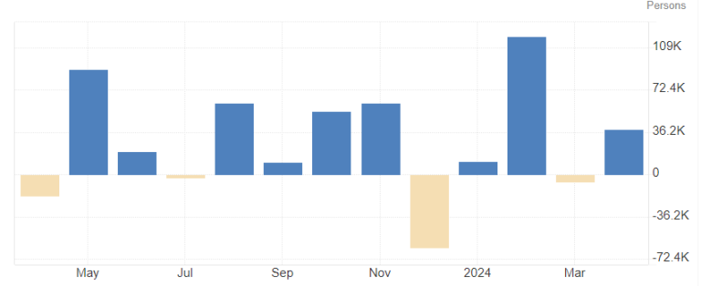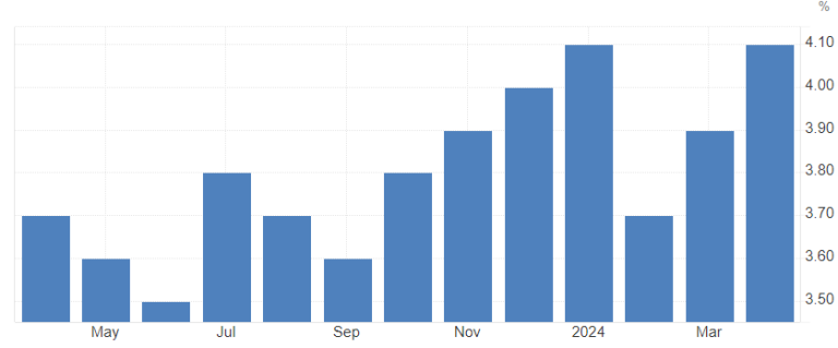 Australia is reporting labor data at 01:30 GMT with the unemployment rate expected at 4.0% compared to 4.1% for April data (4.2% whisper). Employment change seasonally adjusted is expected to hit 27.5k vs. 38.5k last time around.